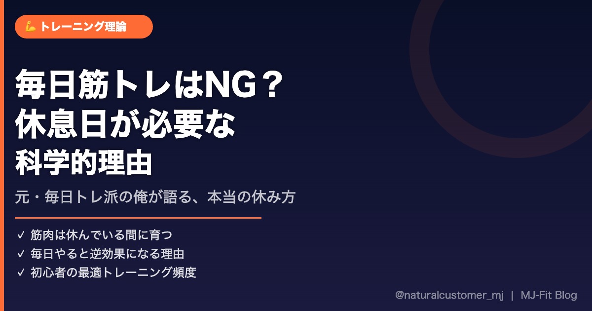 筋トレを始めたばかりのころ、俺は「毎日やれば毎日成長できる」と本気で信じていた。週7日、胸・背中・脚・肩・腕——全部を毎日ぶん回していた時期がある。