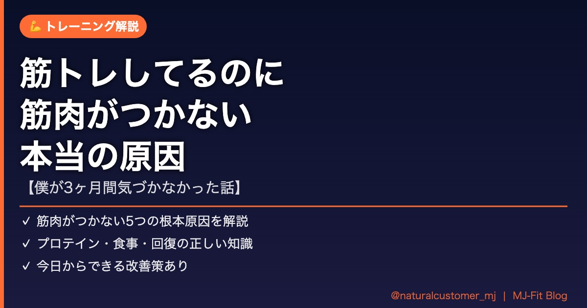 「ちゃんとジムに通ってるのに、全然体が変わらない」そう感じたことはないか?実は筋肉がつかないのには明確な理由がある。僕も3ヶ月間ずっと同じミスを繰り返してた。今日はその原因を5つ、包み隠さず全部話す。